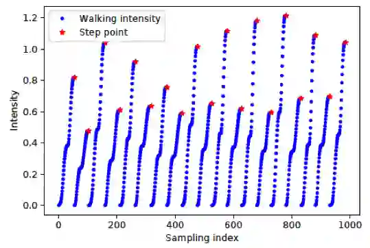 所提出的方法主要包括基于步态强度的计步算法,基于步频和统计特征的步长估计算法,基于深度模型的朝向回归算法和基于机器学习的运动分类算法。下面介绍一下相关算法。