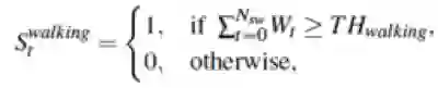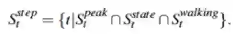 最后,当上述状态均取得1时,认为当前时刻为检测到一步,计算公式如下: