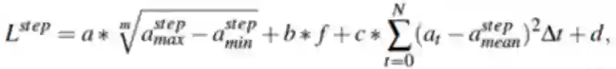 我们提出了一种基于统计特征的步长估计算法,其中统计特征包括步频、一步内的加速度计读数的方差、极差的n次开方,计算公式如下所述: