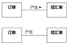 如果是给关联命名,最好给名称添加一个阅读方向,如图8-100所示,方向指示领域知识为“订单产生结汇单”。不过要注意,这个阅读方向只是为了方便理解领域知识,和关联的导航方向没有关系。有的建模工具不支持标注关联方向,可以通过统一偏向某一侧来表达阅读方向。