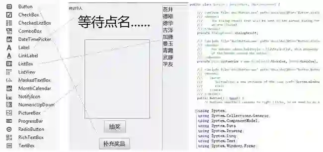 软件开发方法的发展史,就是不断提升复用级别的历史。比起很多年以前,现在的软件开发在图形界面、网络协议、数据存取等基础设施领域的复用上,已经达到了相当的高度。例如要做图8-5这样的一个点名抽奖工具,需要人工编辑的介质(即所谓"源代码")只需要几十行字符,其它部分的逻辑已经由基础设施封装了。
