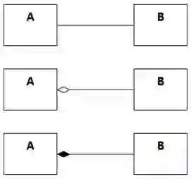 UML规定了关联的三种形式:普通关联、聚合(Aggregation)和组合(Composition)。