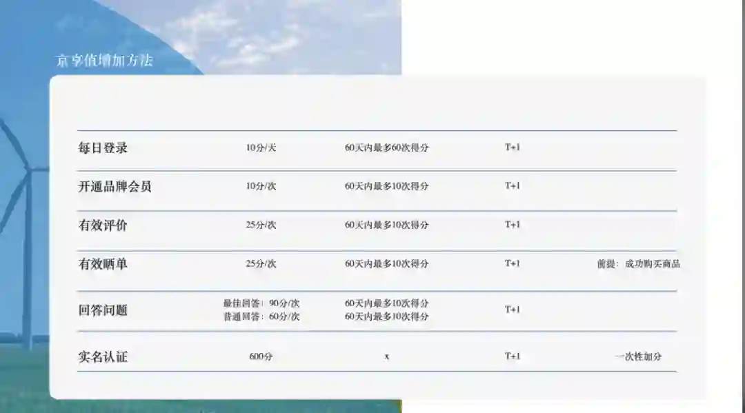 2017 年 9 月,京东商城将原有的「铜银金钻」等级制会员体系调整为「京享值」分值会员体系,而想要提升京享值,就需要通过以下几种方式: