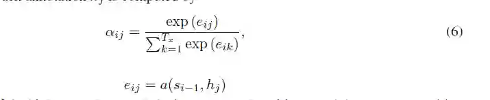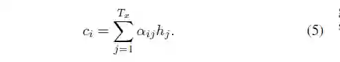 这里的背景向量ci的计算方式,与传统的Seq2Seq模型直接累加的计算方式不一样,这里的ci是一个权重化(Weighted)之后的值,其表达式如公式5所示:
