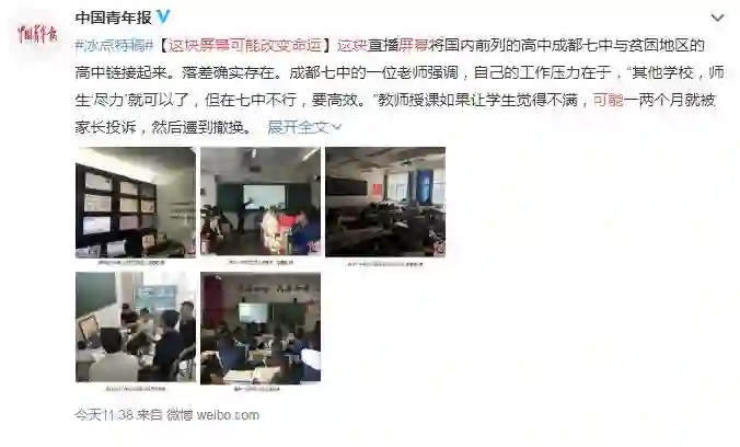 中国青年报发布题为《这块屏幕可能改变命运》的文章,文章开篇写道: