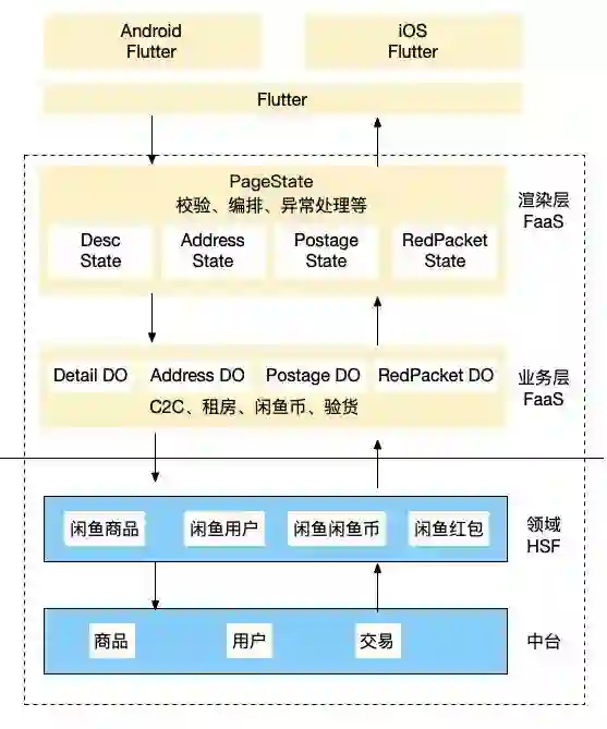Flutter+Serverless 三端一体研发架构,能够解决本篇提出的原有研发架构的两个问题,通过改变端侧职能边界有效减少协同,客户端可以负责整个业务,服务端有更多的时间进行领域沉淀,但是闲鱼实践Flutter+Serverless三端一体研发架构时也遇到以下挑战: