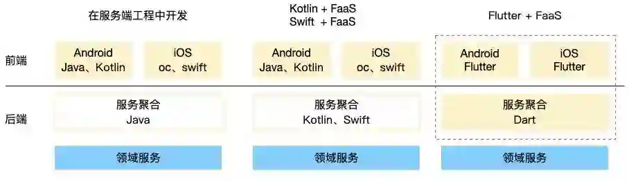 Android、iOS、FaaS层使用 Dart 语言开发,实现三端语言统一,有效屏蔽FaaS层语言学习成本。