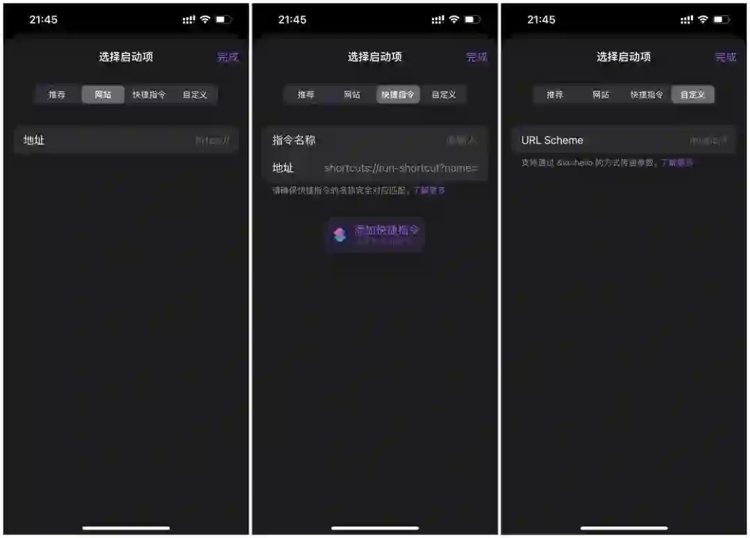 另外,自定义功能的小组件还可以用来启动网址、快捷指令和 URL Scheme。