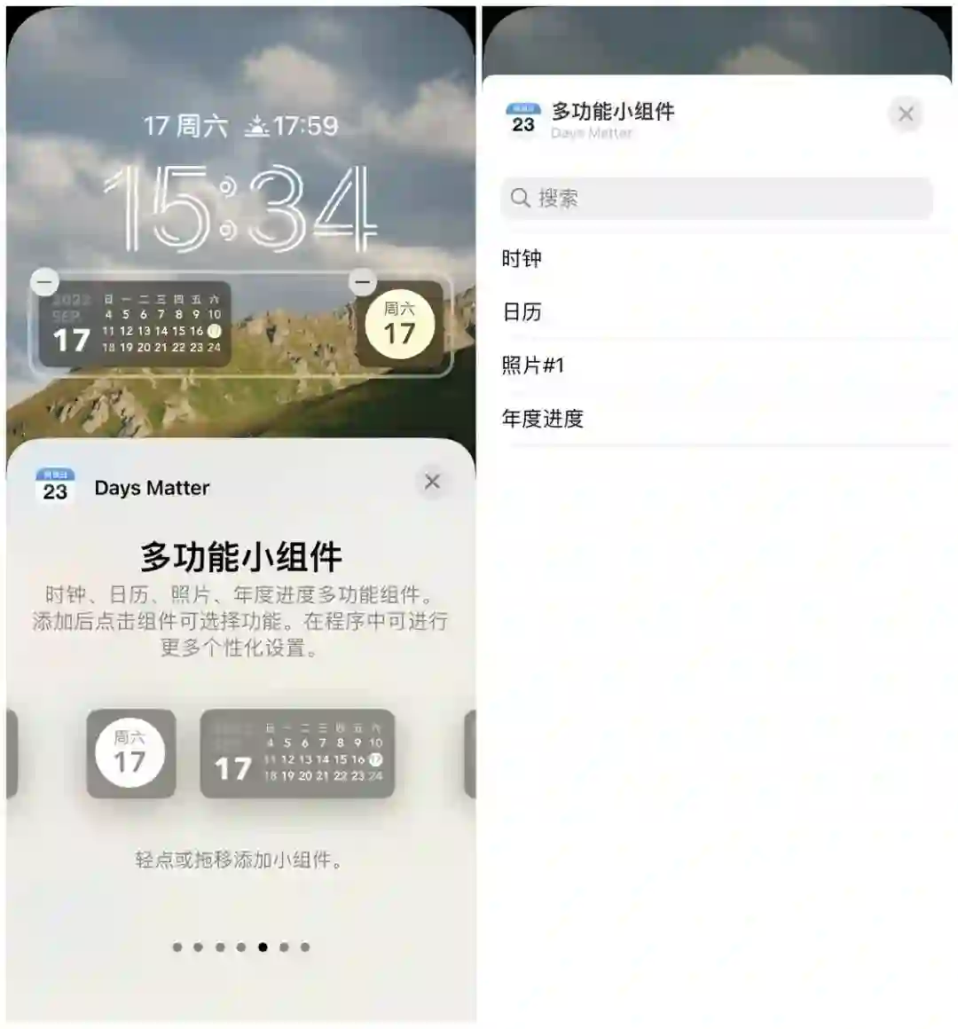 多功能小组件是一个自定义程度较高的模块,可以将其设置为时钟、日历、照片或者年度进度等不同的展现形式。