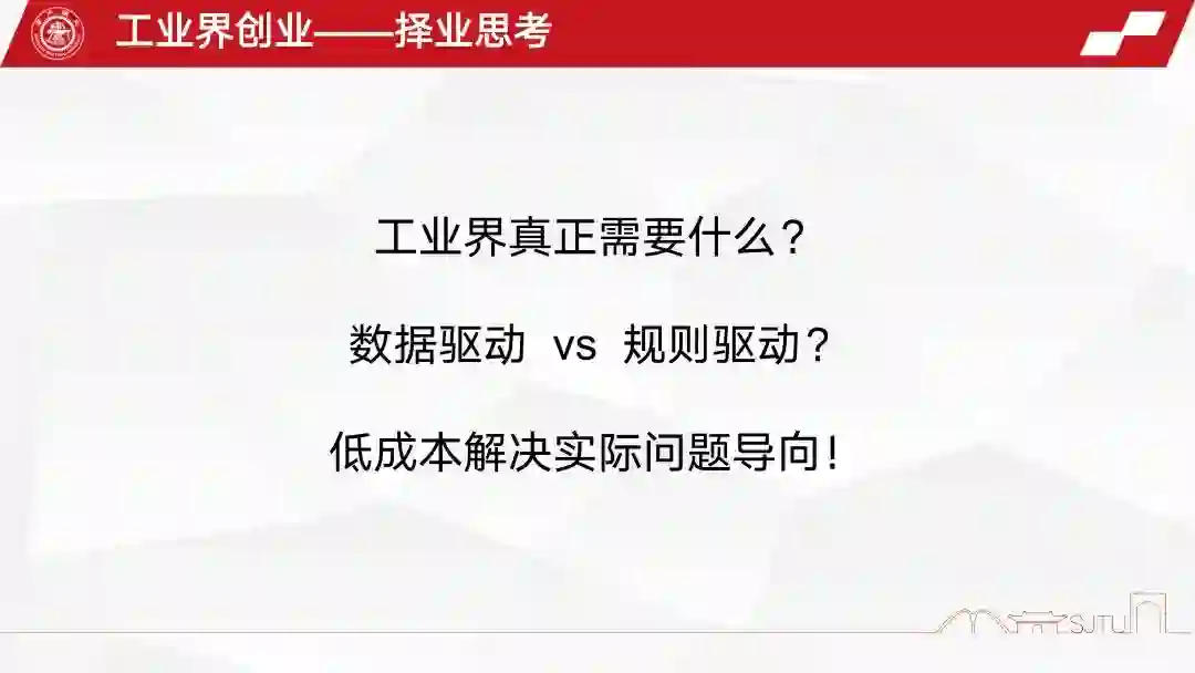 从那个时候我就开始想,数据驱动的 AI 和以前传统的规则驱动的算法比,到底哪个在工业界更有优势?说实话,我现在这个问题也还在思考。但其实工业界的客户给了我的一个解答,就是低成本解决实际问题才是导向。不管里面用的是啥,把问题解决了,我就满意了。