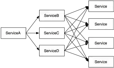 客户端一次用户点击行为往往会触发多次服务端请求,这是一次请求杠杆;每个服务端请求进而触发多个更底层服务的请求,这是第二次请求杠杆。每一层请求可能导致一次请求杠杆,请求层级越多,杠杆效应就越大。在多次请求杠杆反模式下运行的分布式系统,处于深层次的服务需要处理大量请求,容易会成为系统瓶颈。与此同时,大量请求也会给网络带来巨大压力,特别是对于单次请求数据量很大的情况,网络可能会成为系统彻底崩溃的导火索。典型恶化流程图如下图: