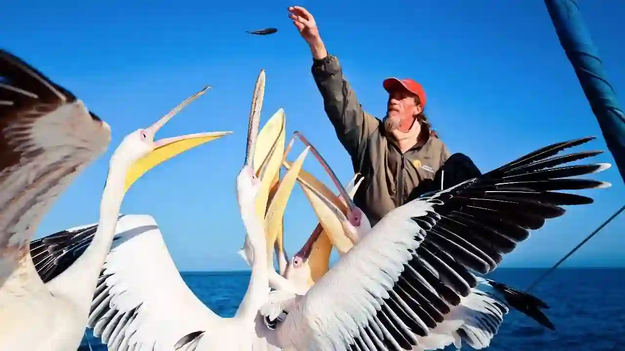 “向西,是有着一边沙漠一边海洋奇观的鲸湾。”