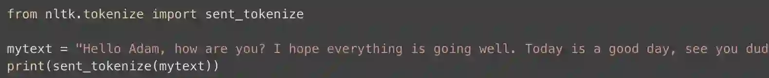 这是你可能会想,这也太简单了,不需要使用NLTK的tokenizer都可以,直接使用正则表达式来拆分句子就行,因为每个句子都有标点和空格。