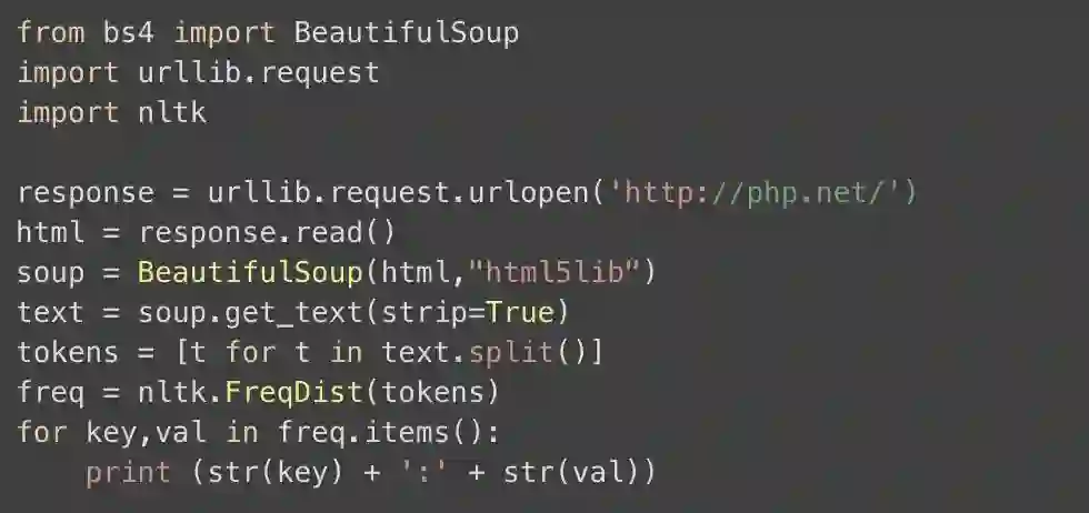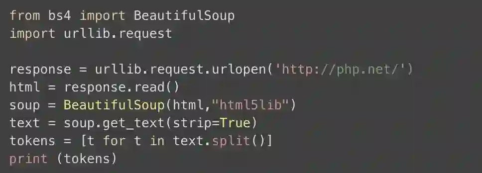 现在我们从抓取的网页中得到了一个干净的文本。 下一步,将文本转换为tokens,像这样: