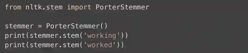 有很多种算法可以避免这种情况,最常见的是波特词干算法。NLTK有一个名为PorterStemmer的类,就是这个算法的实现: