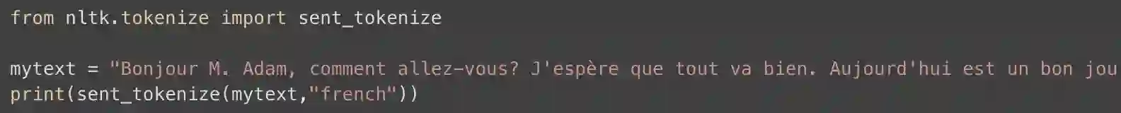 Mr.这个词也没有被分开。NLTK使用的是punkt模块的PunktSentenceTokenizer,它是NLTK.tokenize的一部分。而且这个tokenizer经过训练,可以适用于多种语言。