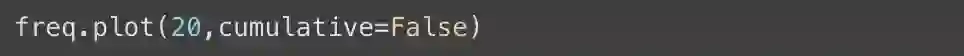 如果搜索输出结果,可以发现最常见的token是PHP。 您可以调用plot函数做出频率分布图: