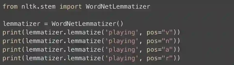 单词变体还原类似于词干,但不同的是,变体还原的结果是一个真实的单词。不同于词干,当你试图提取某些词时,它会产生类似的词: