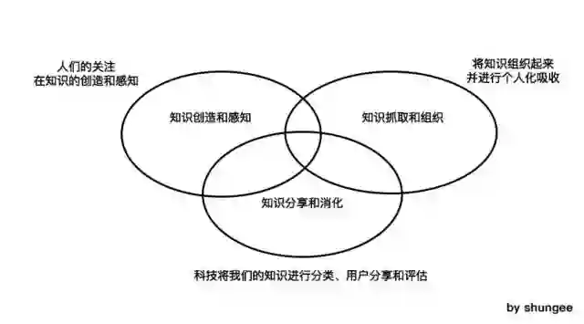 从个人角度来说,人们将自己的关注点构建在对于知识的知晓和创造,之后人们会进行知识的抓取并进行个人的消化过程,而技术的作用就是将我们学到的知识进行分享和分类。