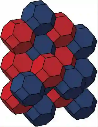 关于只有五种凸多面体的证明,当然还联系着别的数学,比如代数方程的解,比如群论。从实用性的角度来看,关于多面体性质的学问关系到对晶体学的理解,因此它是晶体学、固体物理进而材料科学的几何基础。晶体结构可看作是能充满整个三维空间的某种多面体或者多种多面体之组合在空间中的排列。图5 中的多面体,是由正八面体截去六个顶角得到的十四面体,也称截角八面体。它是常见的晶体单胞。试试数一数它的顶角数和边数是多少,看看是否满足欧拉多面体公式?这个多面体是一种典型的Wigner—Seitz 单胞。开尔文爵士曾猜测这种多面体充满空间, 是表面积之和最小的那种选择,这被称为开尔文猜想。类似地在二维情形,把平面充满的多边形,六角结构(蜂窝、炭单层)是边长之和最小的那种。开尔文猜想在2003年被证明是错的。