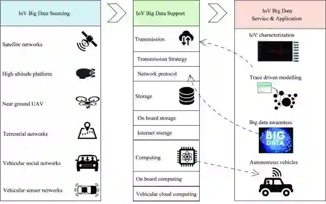 大数据传输部分介绍了应用感知的传输策略、媒体访问控制协议、路由协议以及空中扩展信息平台。大数据存储部分介绍了存储类型(车载存储、路边存储、网络存储)、相关存储机制等。大数据计算部分介绍了基于车车通信的在线计算以及车载云计算等。