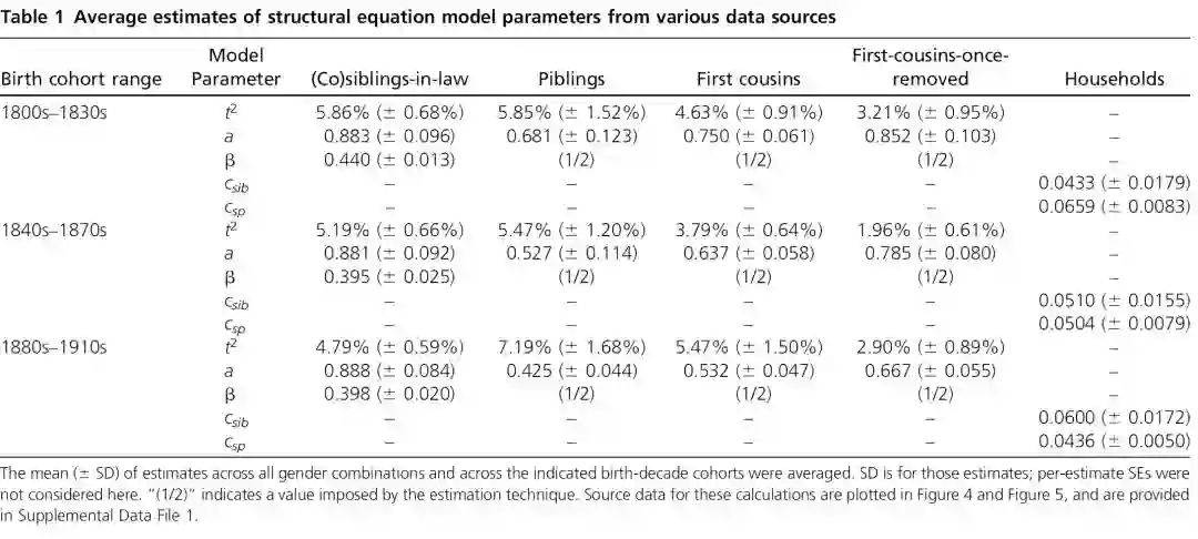 研究人员采用结合数学和统计建模的方法,重点关注出生于 19 世纪和 20 世纪初的亲属。最终,他们发现兄弟姐妹和第一代堂兄弟的遗传性大小与先前的研究大致相同。但是,正如之前的一些研究中所观察到的那样,配偶之间的寿命往往大致相同,这说明存在比遗传因素更为重要的非遗传因素。配偶之间的这种关联可能是由于生活在同一家庭所产生的众多非遗传因素共同影响所致。