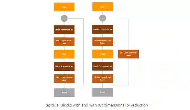 剩余网络或ResNet是我们在本文中将要使用的最终体系框架。以前的框架存在的问题是它们很深。它们有很多层,因此很难训练(逐渐消失的梯度)。因此,ResNet通过所谓的“身份快捷方式连接”或剩余块解决了该问题: