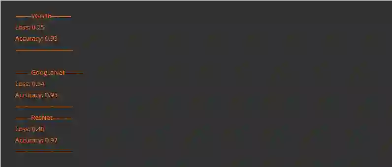 我们可以看到,所有三个模型都取得了非常好的效果,其中ResNet的准确率高达97%,位居前列。