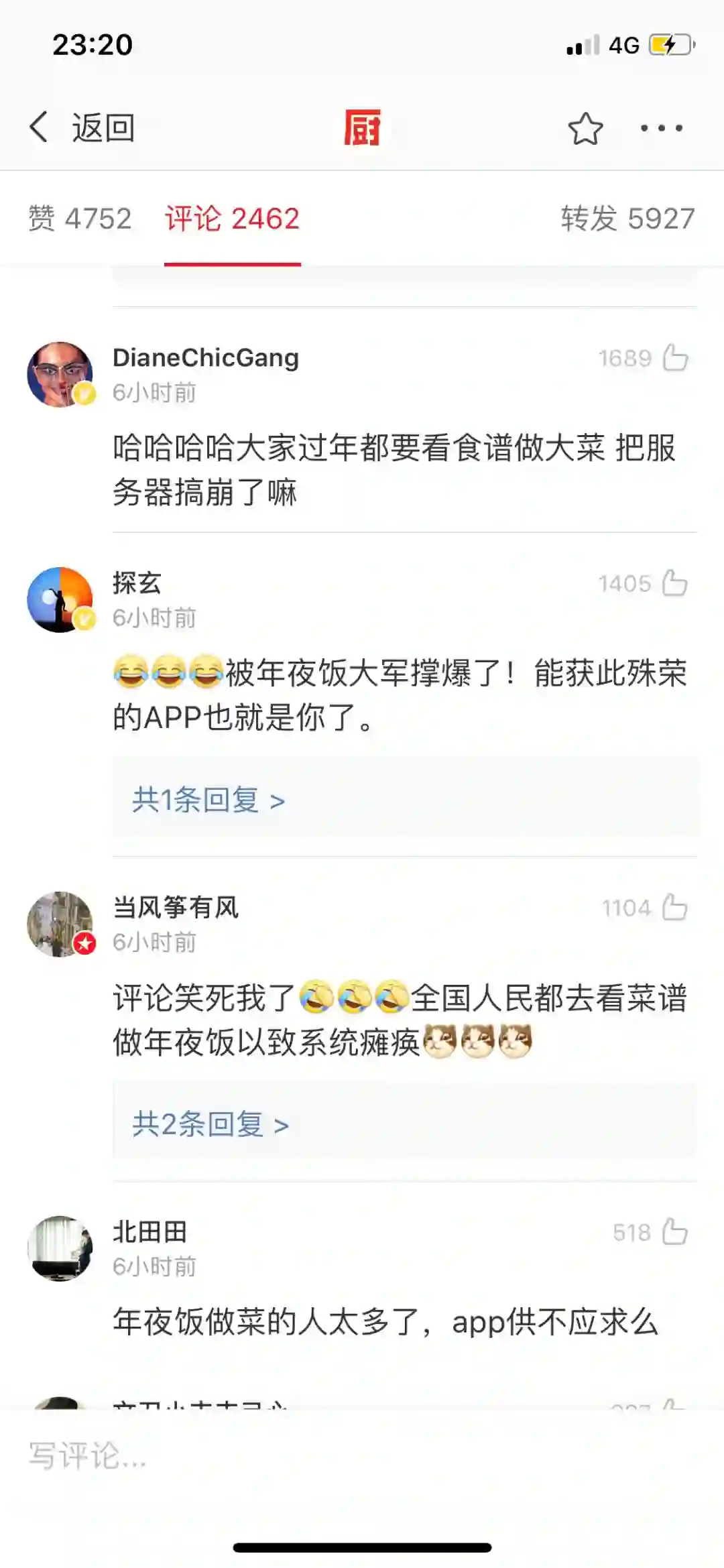 用户都在评论里哭诉“等着做年夜饭,突然崩了”。