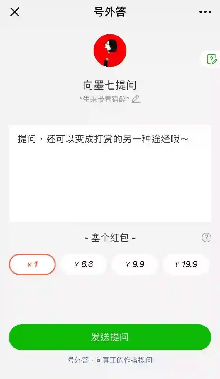 当然,如果你已经秒懂,也可以直接点击页面最下方“阅读原文”申请生成专属自己的“号外答”贴图(注:因为收入直接归申请人,切勿帮他人申请),发朋友圈、放微信公众号、遇到伸手党秒发送...各种体验,用过才知道!收到的提问款可以秒提现哦!