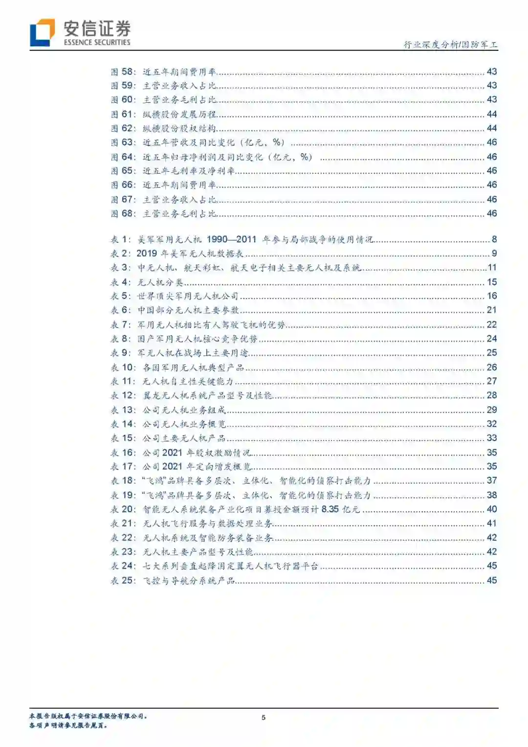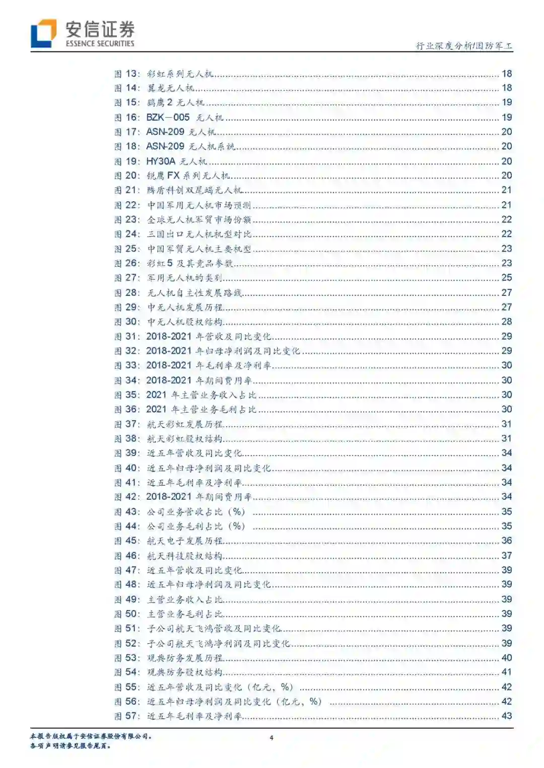 投资策略:在军用无人机方面,我们建议关注拥有先进无人机整机业务,以及盈利能力强、技术含量高的零部件上市公司,对应标的是中无人机、航天彩虹、航天电子等。民用工业及警用无人机虽然当前国内市场规模并不大,但用途广泛,未来发展空间巨大。我们建议关注未来有望研制出高水平、细分市场规模大的民用、警用无人机公司,主要标的是观典防务、纵横股份等。