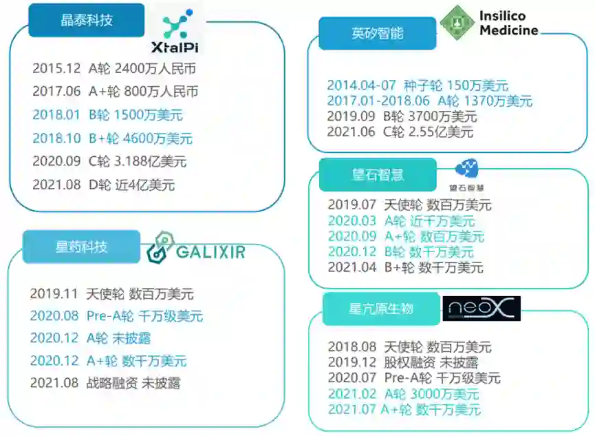 图5. 部分国内AI制药公司融资情况