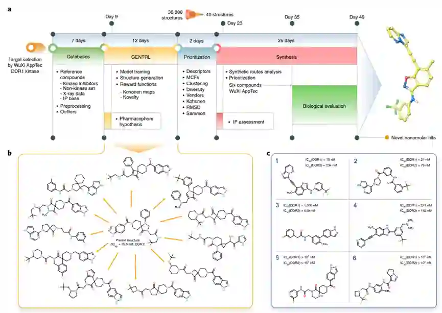 图4. AI发现新DDR1抑制剂工作流程以及优势化合物结构