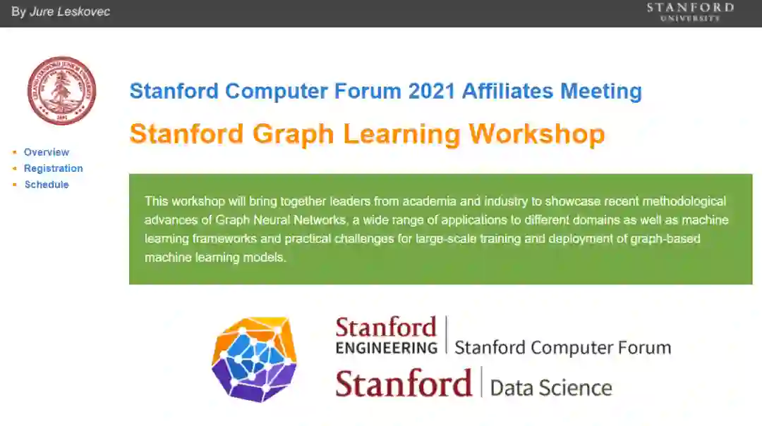 在斯坦福图学习研讨会上,我们将汇集学术界和工业界的领袖,展示图神经网络最近的方法论进展。研讨会将展示领先的图机器学习框架和广泛的图机器学习在不同领域的应用。此外,研讨会将讨论大规模训练和部署基于图的机器学习模型的实际挑战。