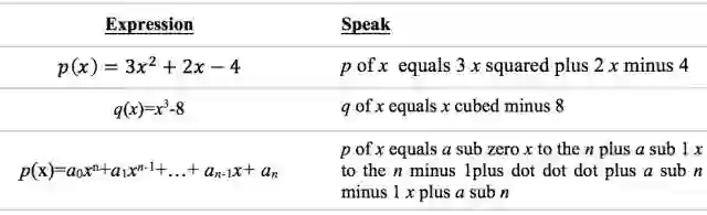 以上几个是代数表达式,是符号之间的运算。表达式不是等式,所以其英文翻译也不是一个句子,类似一个名词短语。