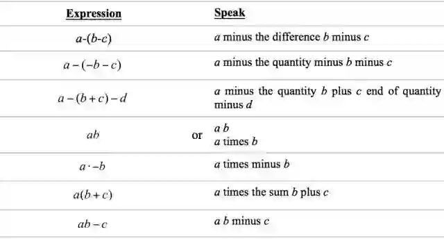 a-(-b-c)读作a minus the quantity minus b minus c,使用quantity是英语语言习惯,避免plus和minus连在一起说。