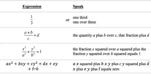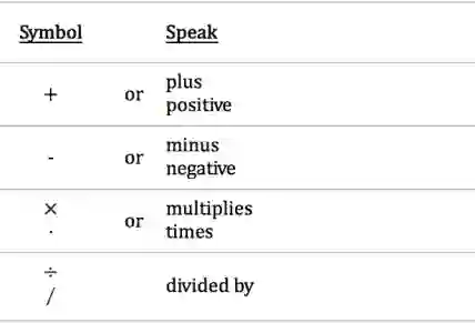 其他的类推,只要你认识数学符号,应该不难用英语说出来。