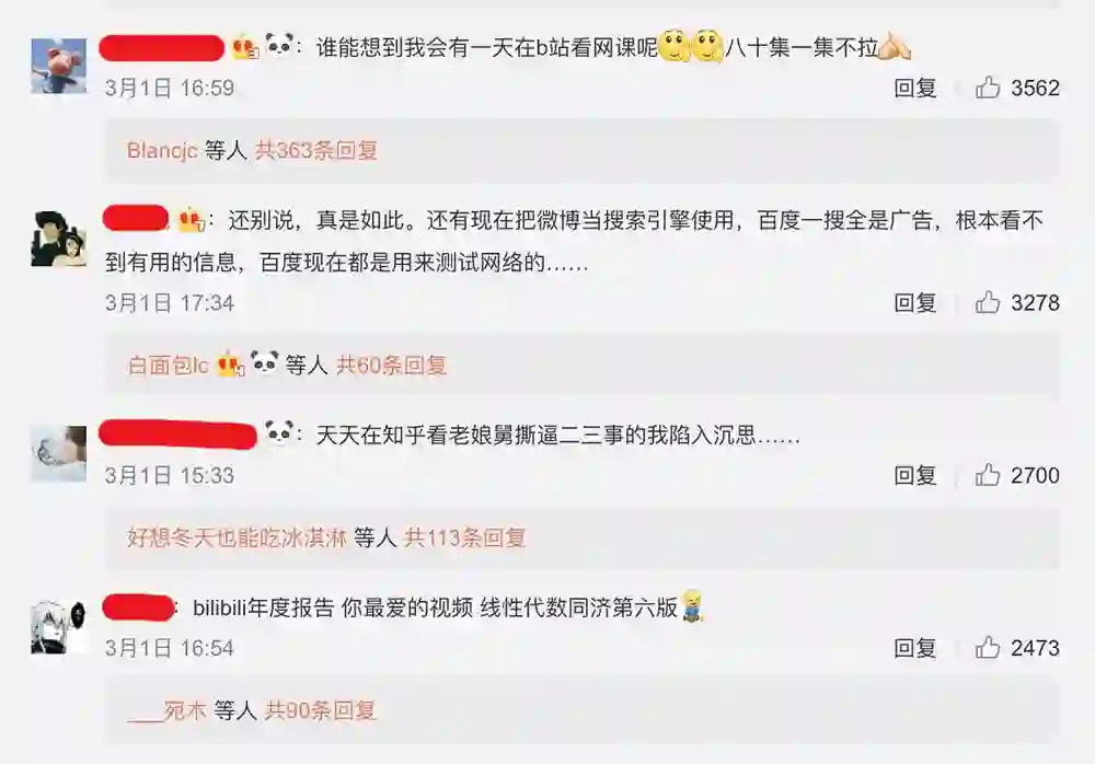 在那条引发了诸多讨论的微博下,有人留言说自己会在 B 学习做饭,看科普视频,甚至有人在期末考试期间,看完了三十多集的《法律逻辑学》。