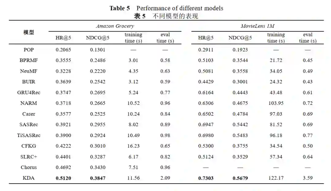 该框架还在主流的推荐算法上进行了实验,主要结果如下。