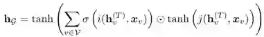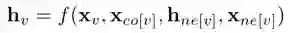 其中,x_v为节点v的features,x_co[v]为其周围边的features,h_ne[v]表示节点v周围邻居节点的state embedding,x_ne[v]表示周围节点的features。