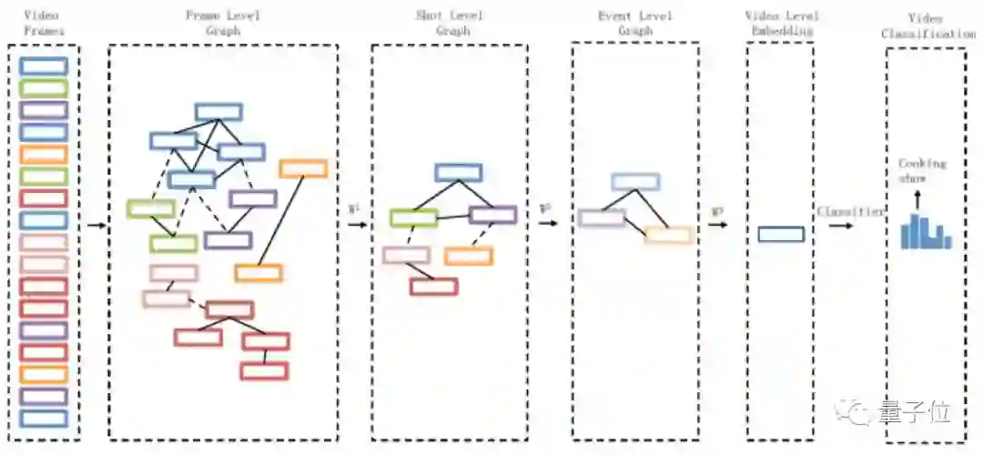 因此阿里研究团队通过深度卷积图神经网络(DCGN)对视频的帧、镜头、事件进行多级的建模,逐渐地从帧级、镜头级,一直到视频级进行抽象,从而获得视频全局的表达,进而进行分类: