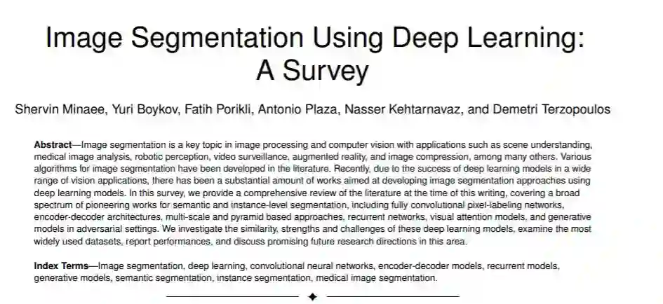 作者:Shervin Minaee, Yuri Boykov, Fatih Porikli, Antonio Plaza, Nasser Kehtarnavaz, and Demetri Terzopoulos
