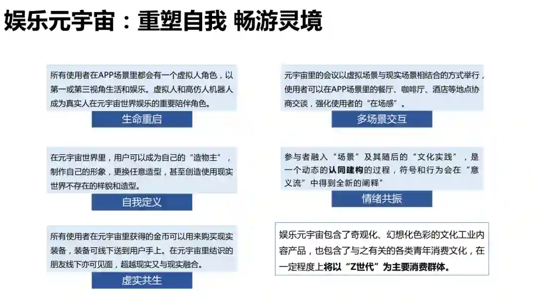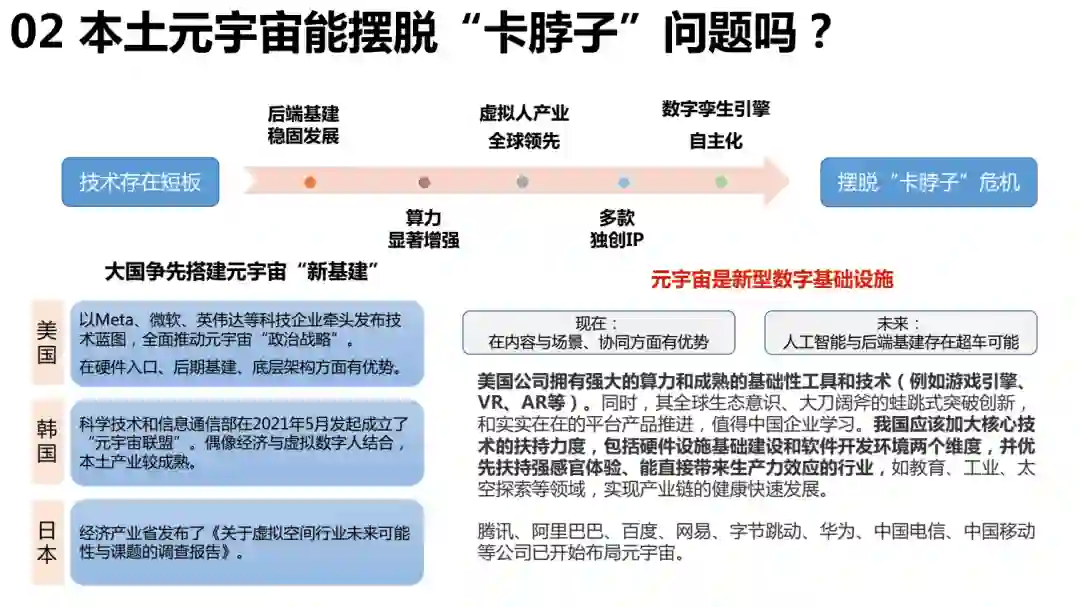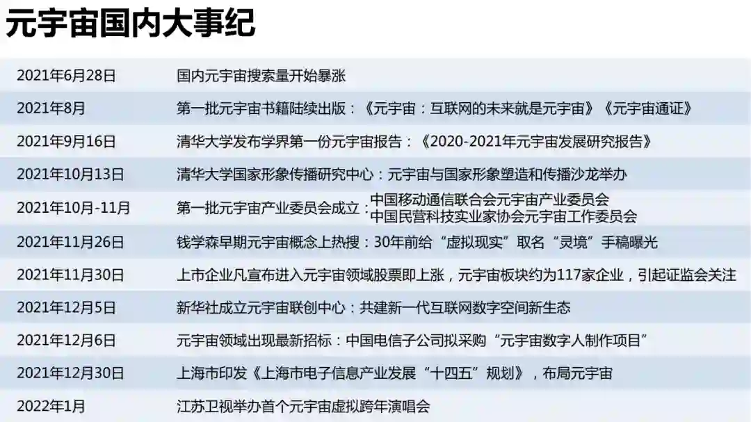 清华大学沈阳教授团队发布了《元宇宙发展研究报告2.0版》,总计205页。报告基于《元宇宙发展研究报告1.0版》,从元宇宙的缘起、概念与属性、技术与产业链、场景应用、风险点及治理、热点七问、远未来展望等七个部分对元宇宙发展进行了深入的研究与分析。