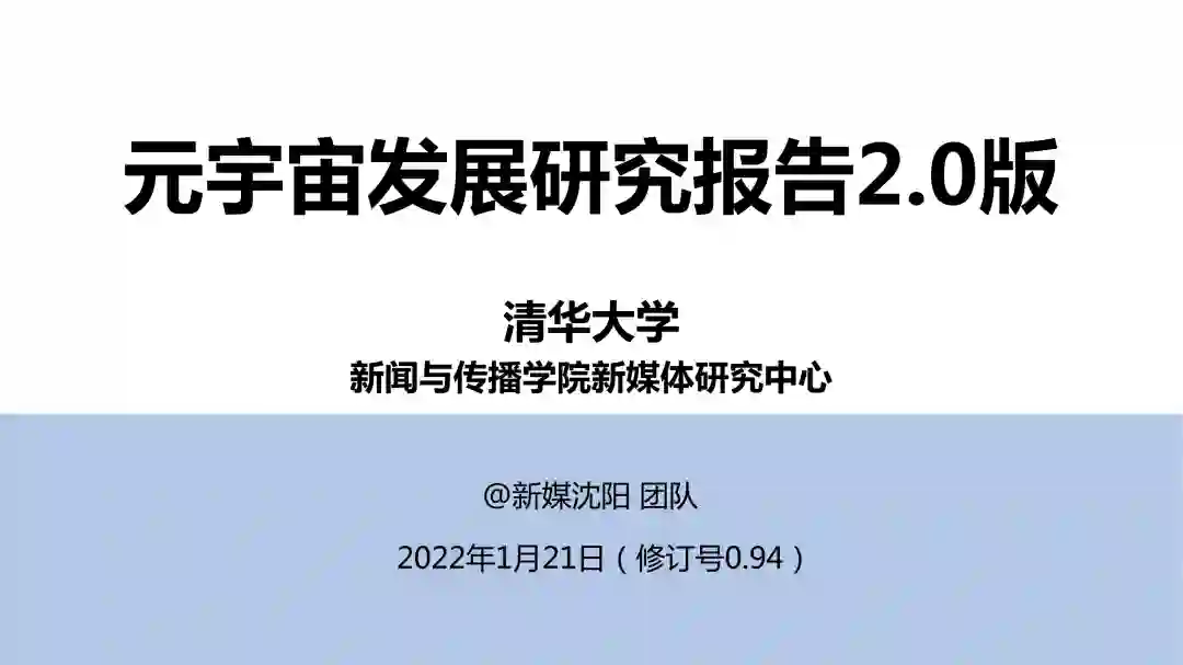 了清华大学沈阳教授团队发布了《元宇宙发展研究报告2.0版》。