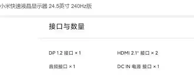 TFT Central 发现,小米新推出的 24.5 英寸 240Hz 显示器,标称搭载双 HDMI 2.1 接口,但对比注释内容却像是把一款 HDMI 2.0 的设备宣传为 HDMI 2.1。