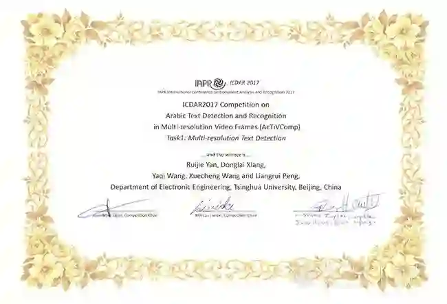 阿拉伯文视频文本检测获奖证书
