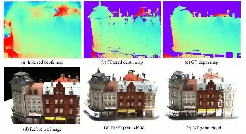 深度图融合:与其他多视图立体方法类似,用深度地图融合来集成来自不同视图的深度地图以统一点云表示。