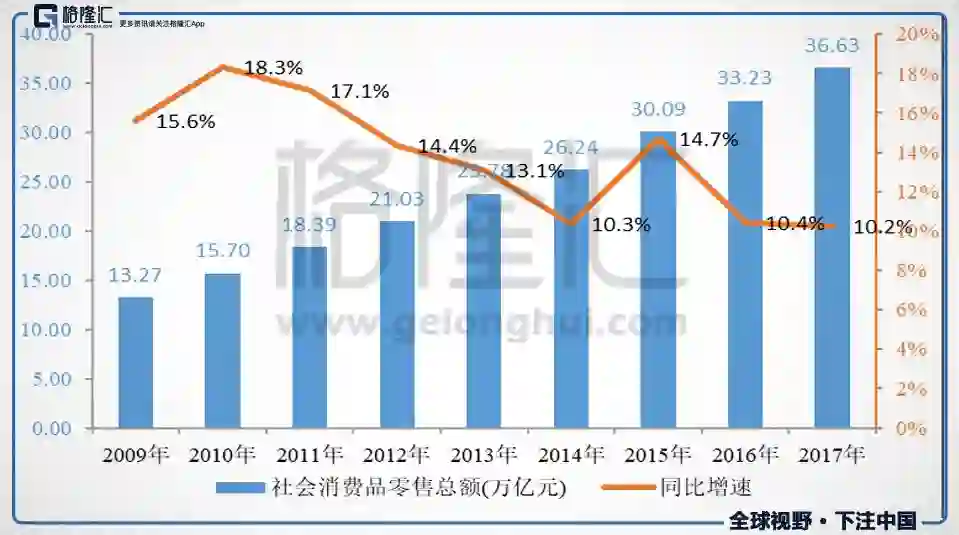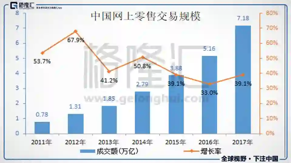这个数字经济体的空间,是全体中国人的消费,2017年这个规模是36.63万亿;而如果只算电商(网络零售)的规模,2017年是7.18万亿。