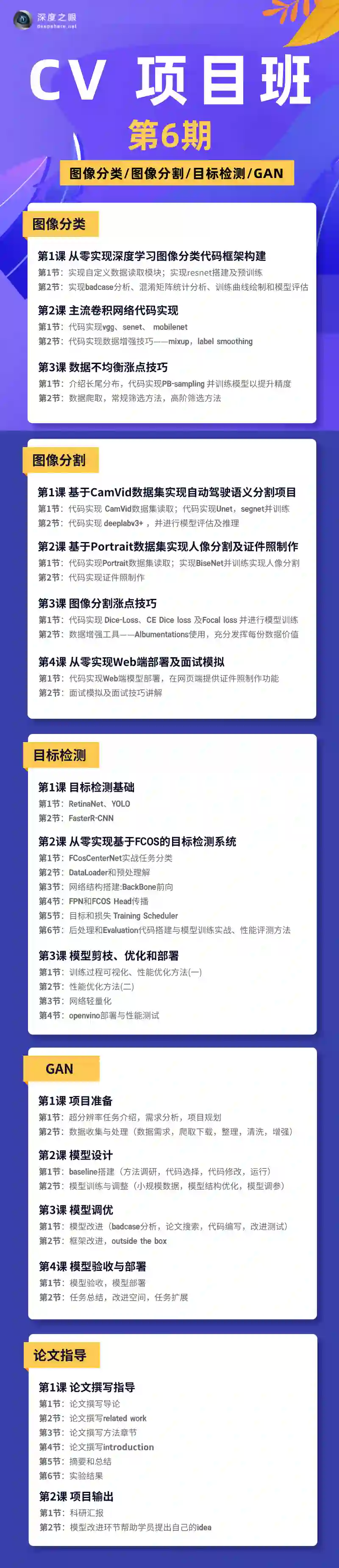 如果你正在发愁论文、就业,我建议你参加深度之眼CV项目班。