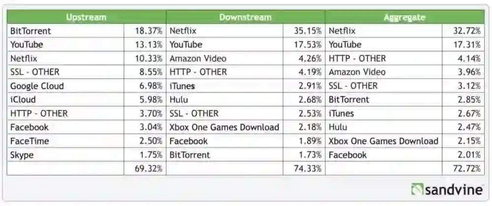 [7] 历年的 Sandvine Global Internet Phenomena Report